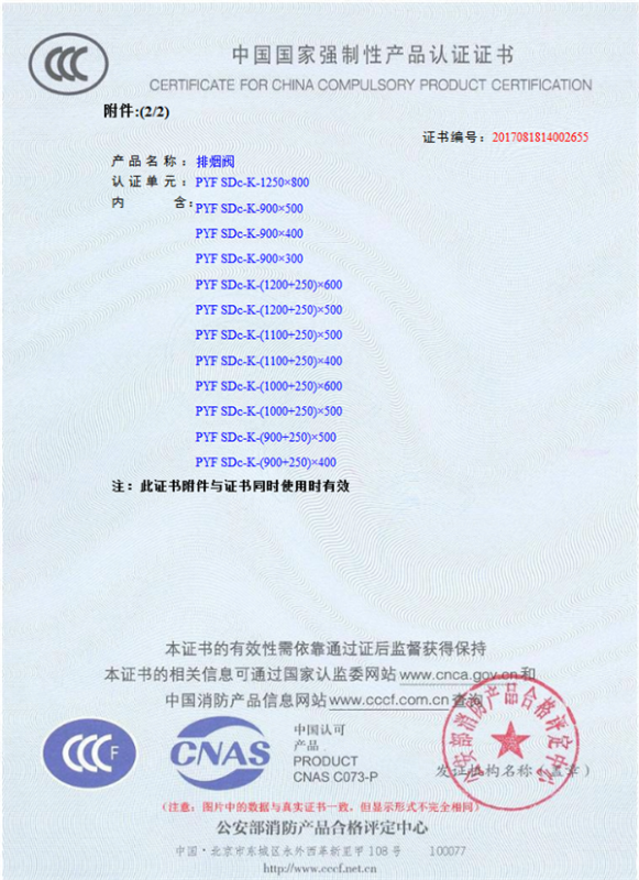 產(chǎn)品全通過(guò)國(guó)家消防檢測(cè)中心檢測(cè),獲得CCC證書(shū)